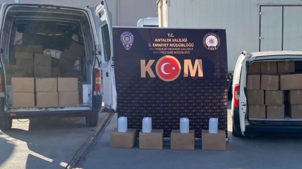 Antalya Emniyet Müdürlüğü Kaçakçılık ve Organize Suçlarla Mücadele Şube Müdürlüğü ekipleri, '5607 Sayılı Kaçakçılıkla Mücadele Kanunu’na Muhalefet Etmek' suçuna yönelik yürütülen çalışmalar kapsamında, Kepez ve Muratpaşa ilçelerindeki 2 iş yeri ile 2 araca eş zamanlı operasyon düzenledi. Ekipler aramalarda toplam 14 bin 884 litre sahte alkol ele geçirdi.
