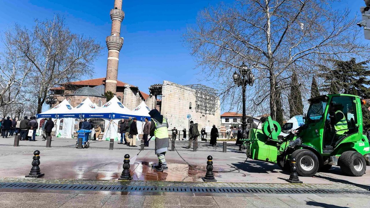 Başkentte Ramazan ayının en yoğun noktaları arasında yer alan Kızılay Meydanı, Ulus Meydanı ve Hacı Bayram-ı Veli Camii çevresinde sabahın erken saatlerinde başlayan çalışmalar gece geç saatlere kadar devam ediyor. Ekipler bu bölgelerde mekanik yıkama ve süpürme araçlarıyla kapsamlı temizlik gerçekleştiriyor.