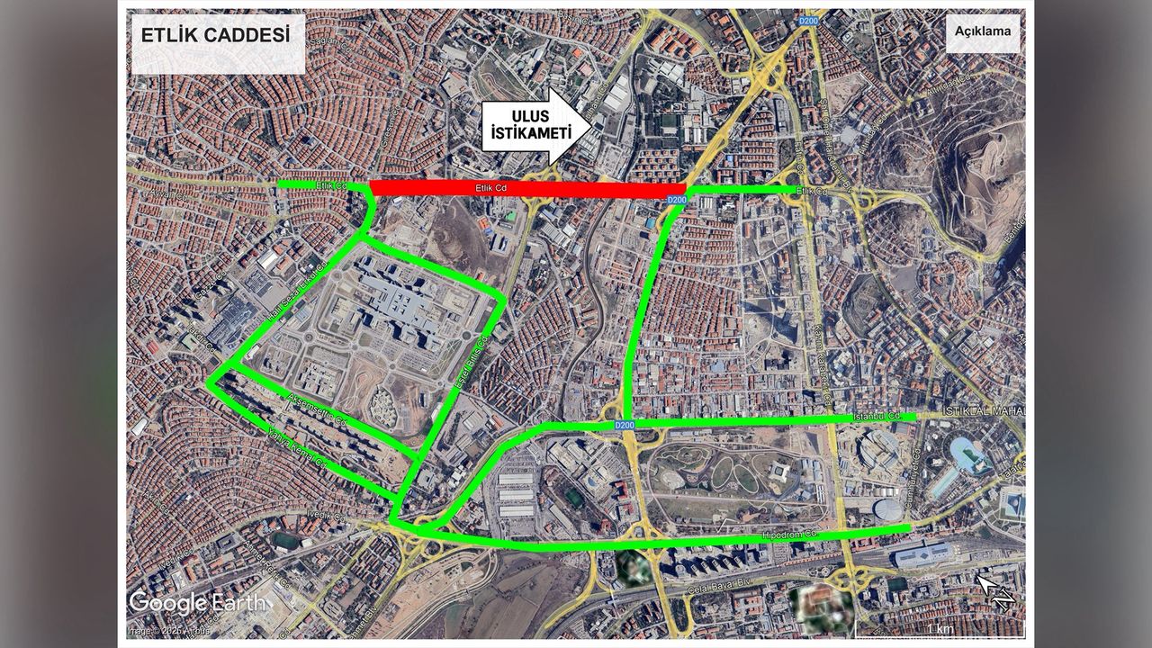 Çalışmalar süresince Etlik Caddesi’nin Ulus istikameti araç trafiğine tek şerit açık olacak. Belediye, sürücülerden Eşref Bitlis, Gülhane, Halil Sezai Erkut caddeleri ile Etlik Şehir Hastanesi iç yollarını alternatif güzergâh olarak kullanmalarını istedi.