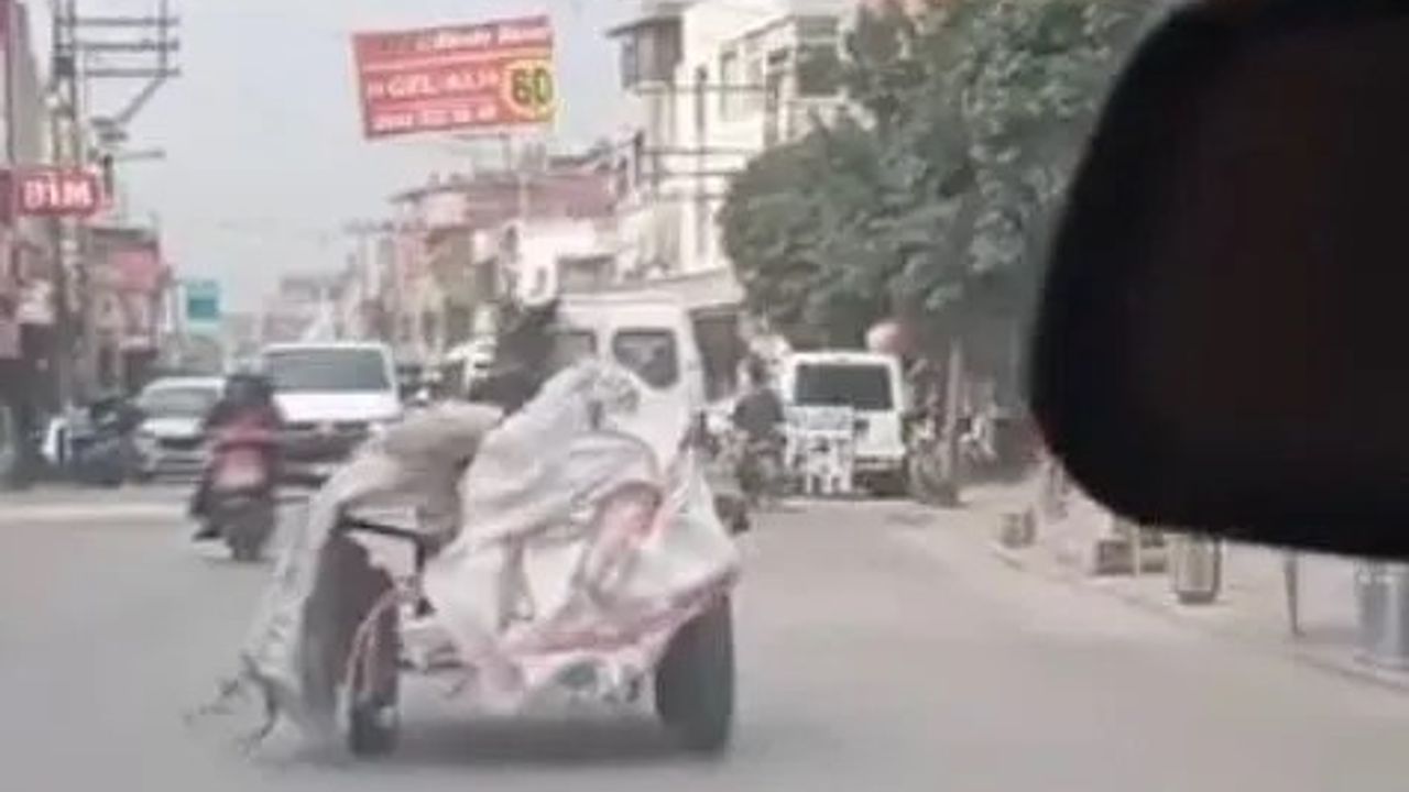 Koşarak ilerleyen at arabasındaki boş çuvallar yola saçılırken, araçlar arasında hızla geçen at arabası karşı şeritten gelen bir otomobile çarptı. Çarpışma sonucu otomobilde maddi hasar meydana geldi.