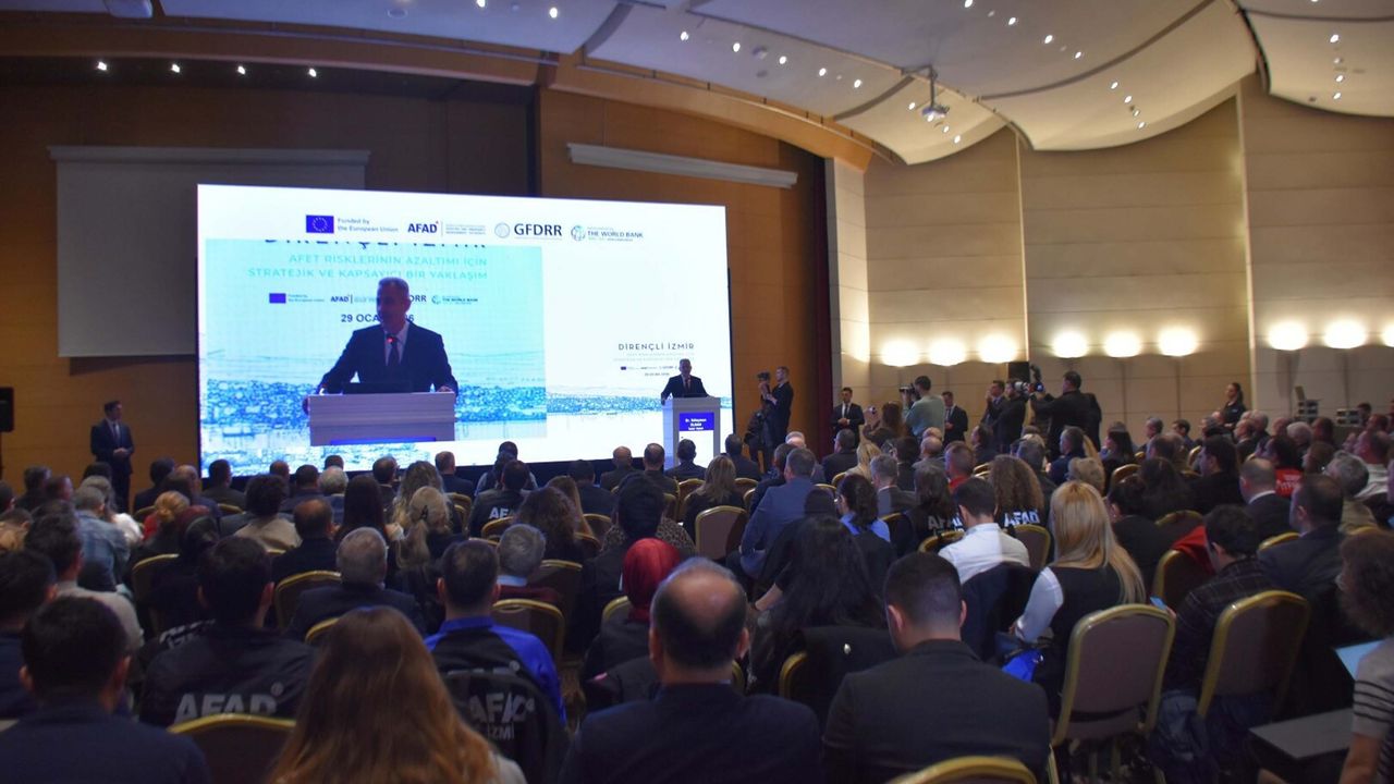 Dünya Bankası Ülke Yönetim Ofisi yetkilisi Korhan Yazgan ise 'Türkiye'de yürüttüğümüz faaliyetler içerisinde afetlere karşı hazırlıklı olma ve afetlerden sonra iyileştirme özel önem verdiğimiz konular arasında yer almaktadır. Dünya Bankası olarak İzmir'de farklı sektörlerde ve ölçeklerde çeşitli projeleri finanse ediyoruz. Dirençli İzmir Projesi İzmir'de afet risklerini azaltmaya yönelik öncelikli yatırımların belirlenmesine ve afetlere müdahale kapasitesinin güçlendirilmesine odaklanmaktadır. Proje Avrupa Birliği hibesi ile finanse edilmekte olup, teknik ve mali uygulaması küresel afet risklerinin azaltılması ve iyileştirilmesi mekanizması aracılığıyla Dünya Bankası tarafından yürütülmektedir' dedi.