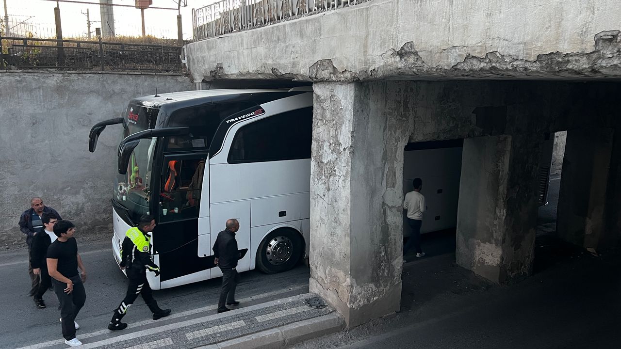 Altgeçide sıkışan otobüs, yapılan çalışma sonucu lastiklerin havası indirilerek bulunduğu yerden çıkarıldı. Olayda yaralanan olmadı.