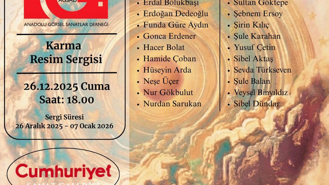 Anadolu Görsel Sanatlar Derneği’nin (AGSAD) organizasyonuyla hazırlanan Karma Resim Sergisi, 26 Aralık 2025 Cuma günü saat 18.00’de kapılarını açacak. Sergi, Ankara’nın Çankaya ilçesinde bulunan Cumhuriyet Sanat Galerisi’nde sanatseverleri ağırlayacak.