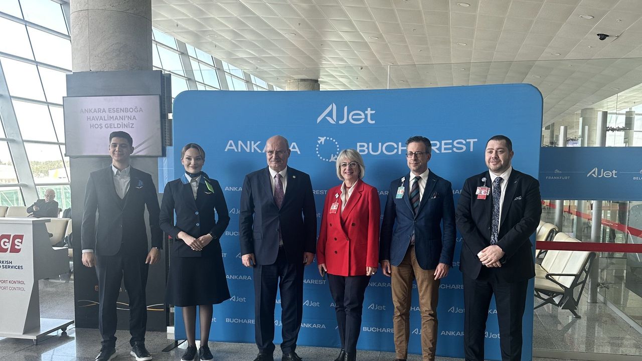 TAV Havalimanları tarafından işletilen Ankara Esenboğa Havalimanı'ndan AJet Havayolları'nın Bükreş'e yaptığı ilk uçuş, törenle uğurlandı. Dün saat 17:30'da Boeing 737-8 MAX tipi uçakla düzenlenen VF595 sefer sayılı ilk uçuşla yolcular Ankara'dan Bükreş'e hareket etti. Düzenlenen törene Ankara Esenboğa Havalimanı Mülki İdare Amiri Cem Afşin Akbay, DHMİ Esenboğa Başmüdürü Yücel Karadavut, AJet Havayolları Genel Müdürü Kerem Sarp, TAV Ankara Genel Müdürü Nuray Demirer, ATO Başkanı Gürsel Baran ile havalimanı ve havayolu çalışanları ve diğer davetliler de katıldı. AJet Havayolları, Ankara-Bükreş hattında pazartesi, perşembe ve cumartesi günleri olmak üzere haftada üç gün karşılıklı sefer yapacak.