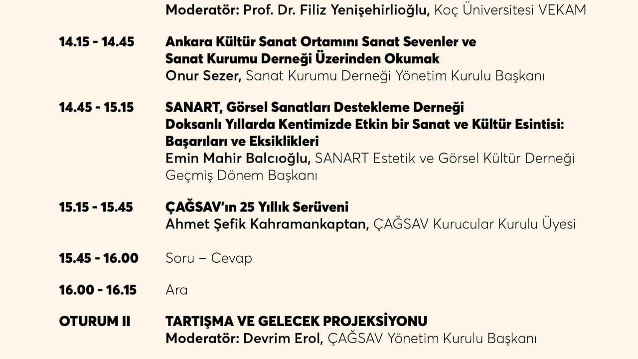 ÇAĞSAV’ın 25. yılı kapsamında düzenlenen program, Ankara’nın kültür sanat hafızasını kayıt altına alırken, geleceğe yönelik yeni iş birlikleri ve projeler için de önemli bir zemin oluşturmayı amaçlıyor.