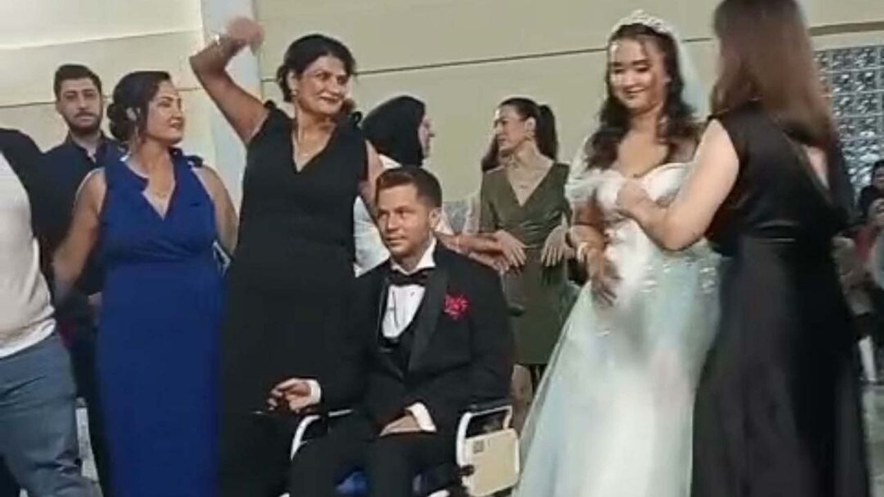 Ömer Arıkan, tekerlekli sandalyesiyle gelinle birlikte piste çıkarak davetlilerle dans etti.