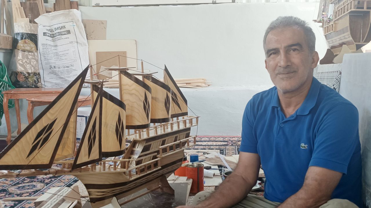 32 yılda irili ufaklı yüzlerce gemi maketi yaptığı belirten Hakkı Ünal, hobisinin bir tutkuya dönüştüğünü belirterek, "Boş durmamak adına cezaevinde görev yapan ağabeyimden öğrenerek başladığım gemi maketi yapma işini güvenlik koruyucusu olmama rağmen bırakmadım. 32 yıldır sürdürüyorum. Asrın felaketinin ardından 2 yıl ara verdiğim, çok sevdiğim bu işi tekrar devam ettiriyorum. Sabırla işlediğim, beni hayata bağlayan gemi maketi yapma işine yeniden başladım. Bugüne kadar yüzlerce irili ufaklı yaptığım maketleri Türkiye'nin her yerine gönderdim. Evde en büyük yardımcım eşim, yoğun talepten dolayı siparişleri ancak 1 veya 2 ay sonrasına teslim edebiliyorum" dedi. (DHA)
