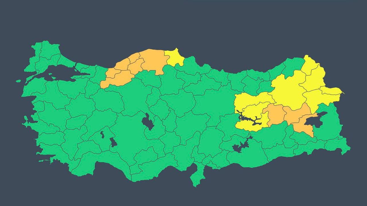 Bakanlığın sanal medya hesabından yapılan açıklamada, 'Meteoroloji Genel Müdürlüğü'nden alınan son bilgilere göre;