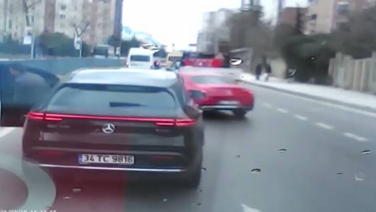 Olay, öğle saatlerinde Bahçeşehir 2. Kısım Mahallesi Esenkent-Bahçeşehir Yolu'nda yaşandı. İddiaya göre seyir halindeki 34 YSR 12 plakalı otomobil sürücüsü ile 34 TC 9816 plakalı otomobil sürücüsü arasında çıkan 'yol verme' tartışması kısa sürede büyüyerek kavgaya dönüştü. Bunun üzerine 34 TC 9816 plakalı otomobilin sürücüsü aracından inerek tartıştığı kişinin aracına doğru yürüdü. Yaşananlar çevredeki kişiler tarafından cep telefonuyla kaydedildi.