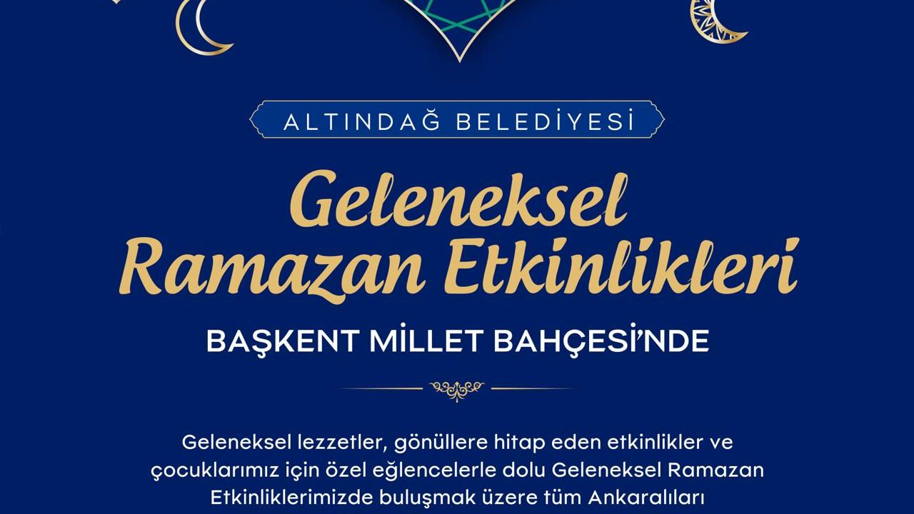 Ramazan ayı, Ankara’nın Altındağ ilçesinde bu yıl da çeşitli etkinliklerle karşılanacak. Altındağ Belediyesi ev sahipliğinde düzenlenecek Geleneksel Ramazan Etkinlikleri, 19 Şubat – 18 Mart tarihleri arasında Başkent Millet Bahçesi’nde gerçekleştirilecek.