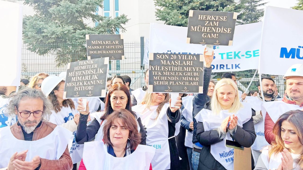 Kamuda görev yapan mühendis, mimar ve teknik hizmetler sınıfı personelini bünyesinde barındıran Mühendis Tek-Sen Konfederasyonu, Çalışma Bakanlığı önünde basın açıklaması yaptı.