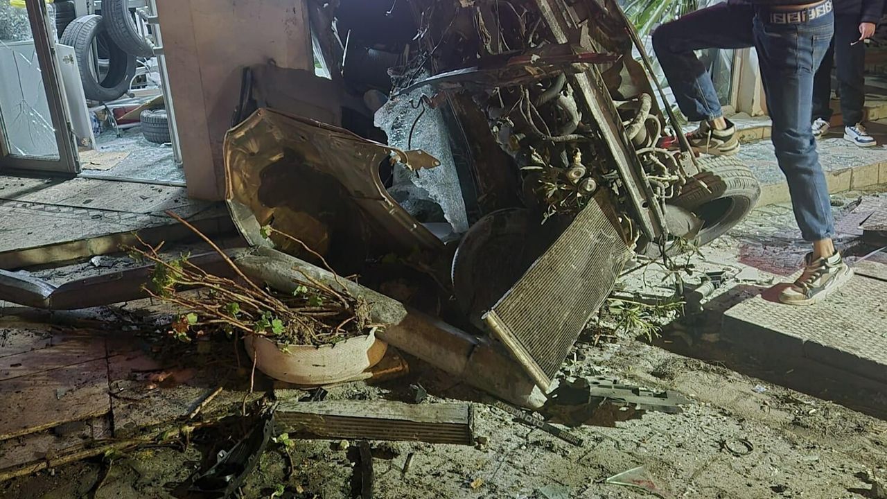 Bodrum’da alkollü sürücünün kullandığı otomobilin oto lastik satış mağazasına çarpıp devrilmesi sonucu meydana gelen kazada 1’i ağır 3 kişi yaralandı. Kaza anı iş yerinin güvenlik kamerasına yansıdı.
