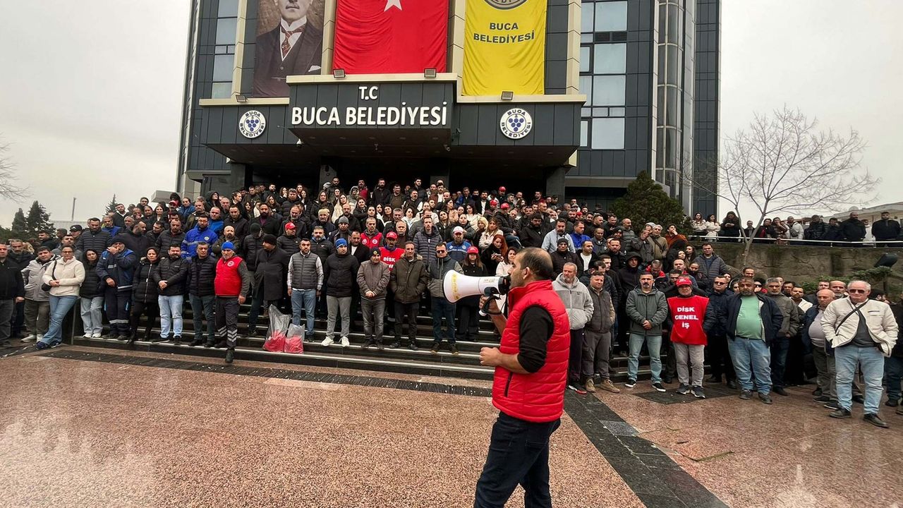 Buca Belediyesi'ndeki işçiler, geçmiş ve mevcuttaki yan haklarını 40 gün geçmesine rağmen almadıkları için dün başladıkları eylemi sonlandırdı. DİSK Genel-İş 6 No'lu Şube Yönetim Kurulu tarafından yapılan açıklamada, 'Yapılan görüşmeler neticesinde süreçle ilgili muhatap olduğumuz kurumlar tarafından üyelerimizin alacağı iwallet kartları, kasım maaşından kalan yan haklar ve mesailerinizin tamamı saat 17.00'ye kadar hesaplarınızda olacağının garantisi alınmıştır. Bu nedenle bugün sabah itibariyle bütün üyelerimiz kendi iş yerlerinde işbaşı yapacaklardır.