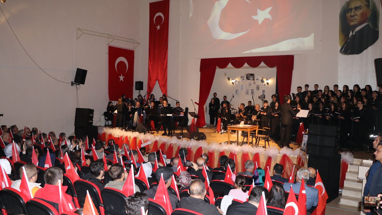 Konuşmanın ardından orkestra ile koroda yer alan ve tiyatro gösterisi sunan öğrenciler, müzisyen Yücel Arzen Hacıoğulları ile çeşitli marş ve türküleri seslendirdi.