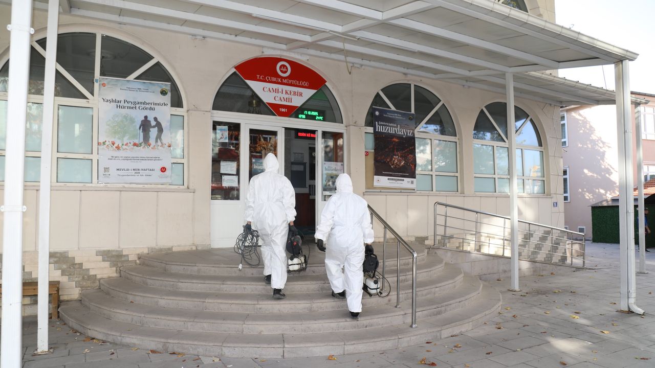 Çubuk Belediyesi'ne bağlı ekiplerce camilerde dezenfekte ve ilaçlama çalışması yapıldı.