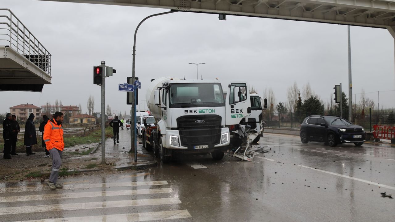 Edinilen bilgilere göre, trafik ışıklarında bekleyen H.Ö. yönetimindeki 06 FCV 744 plakalı beton mikseri ile K.D. idaresindeki 06 EHM 310 plakalı aracın arasına girmeye çalışan S.B.’nin kullandığı 06 EHM 028 plakalı beton mikseri çarpışmaya neden oldu.