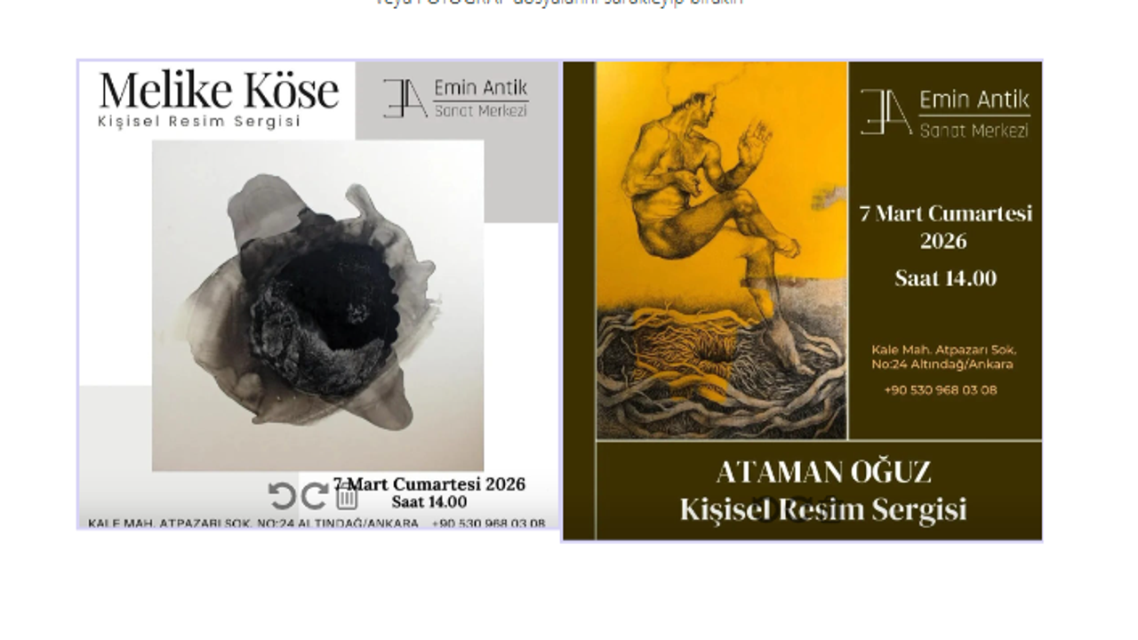 Sanatçı Ataman Oğuz ve Melike Köse’nin eserlerinden oluşan kişisel resim sergisi, 7 Mart Cumartesi günü Emin Antik Kent Merkezi’nde sanatseverlerin ziyaretine açılacak.
