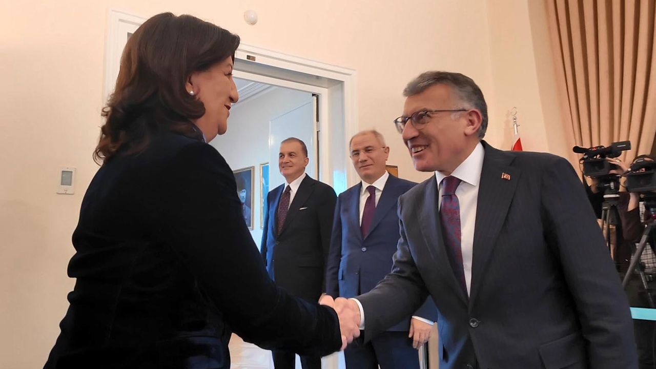 DEM Parti Van Milletvekili Pervin Buldan, Şanlıurfa Milletvekili Mithat Sancar ile Avukat Faik Özgür Erol’dan oluşan heyet, Türkiye Büyük Millet Meclisi’nde AK Parti grubunu ziyaret etti. DEM Parti heyetini, AK Parti Grup Başkanı Abdullah Güler, AK Parti Genel Başkan Vekili Efkan Ala ve AK Parti Sözcüsü Ömer Çelik karşıladı.
