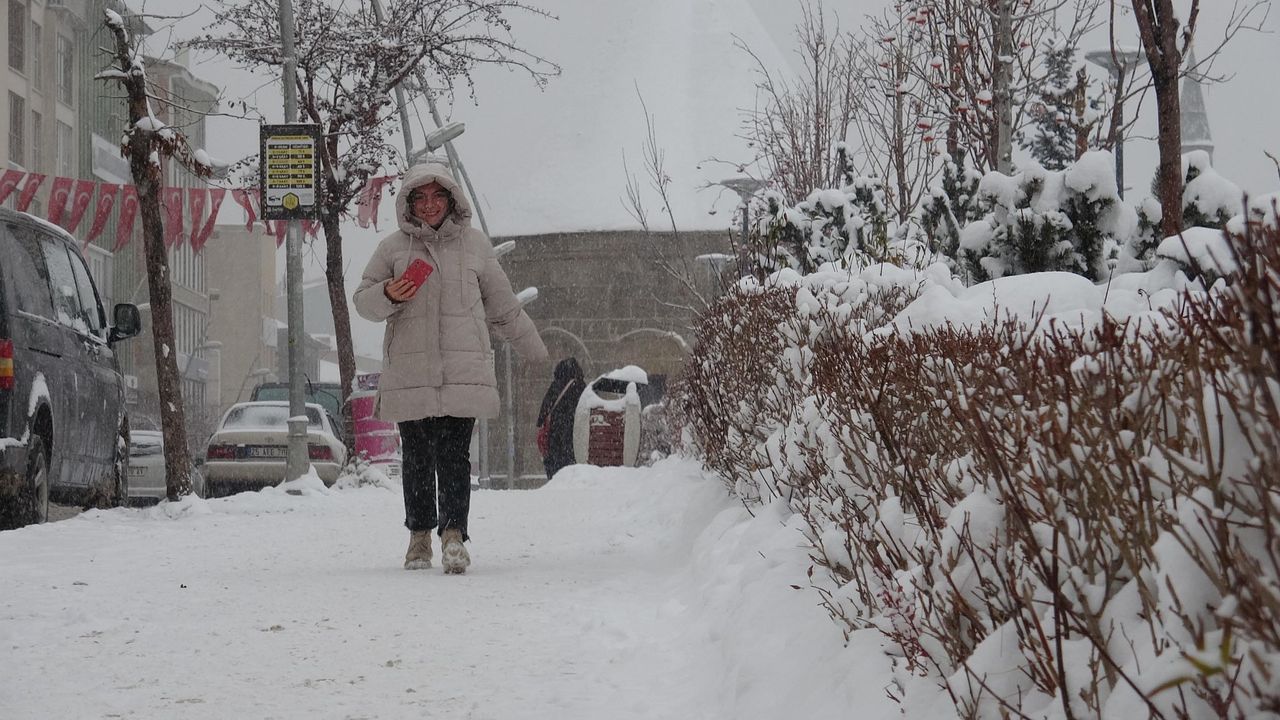 Kar yağışının devam ettiği Erzurum'da iş makinelerine yüklenen tonlarca kar, kent dışına taşınıyor. Kar kalınlığının 25 santimetre olduğu kentte zaman zaman ulaşım sıkıntıları da yaşanıyor. Erzurum'a bu sene karın geç geldiğini söyleyen Sema Coşkun, 'Kar geç geldi ama sağlam geldi. Bence Erzurum deyince beyaz örtüsü geliyor. Bu şekilde sıkı giyinerek soğuktan korunabiliyoruz. Daha fazlası da olabilir' dedi.