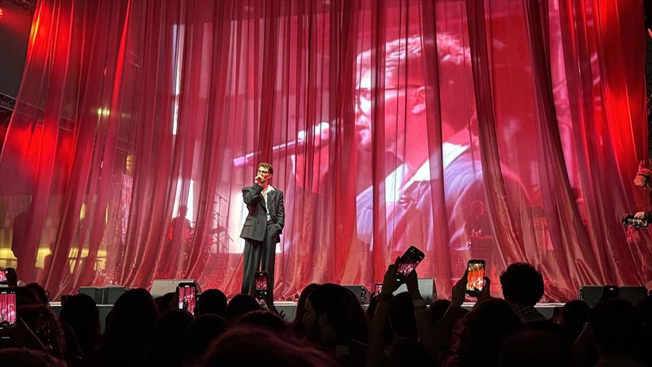 Konser boyunca sanatçıya eşlik eden müzikseverler 'özgür Filistin' sloganları attı.