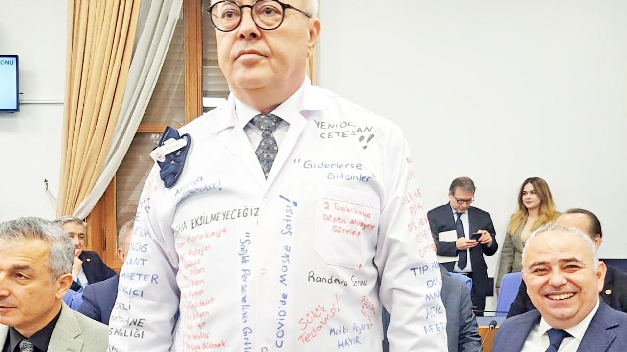 Son dönemde sağlık çalışanları arasında sıkça görülen 'beyaz önlük eylemleri', bu kez Meclis’te yankı buldu. Kendi eliyle hazırladığı önlüğün kollarına 'atanamayan ebe ve hemşireler', 'şua hakkı', 'performans baskısı', '5 dakikada hasta bakma dayatması', 'MHRS çilesi' gibi sağlık sisteminin kronikleşmiş başlıklarını yazan Karaoba, gazetecilere yaptığı açıklamada sert ifadeler kullandı: “Sağlıkta değişim dediler ama iç sağlığı çöküşe sürüklediler. Bugün çeteleşen, parasallaşan bir sistem var.”