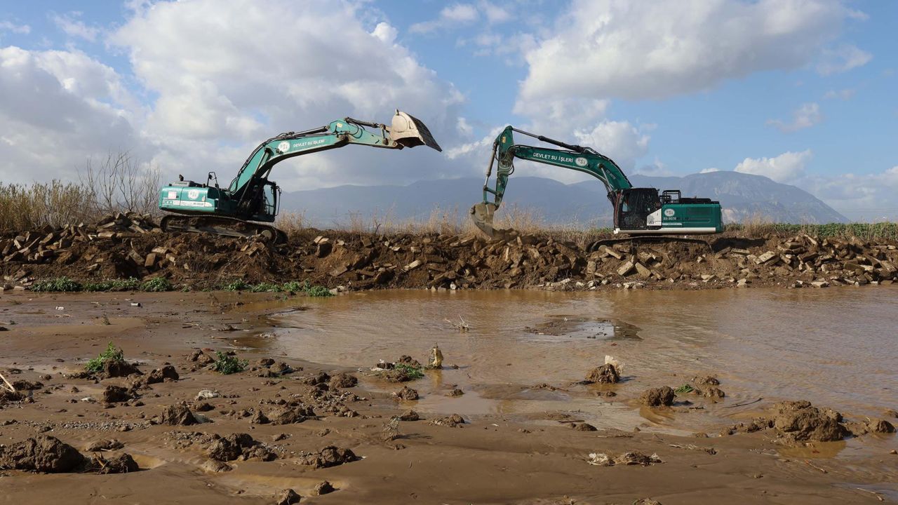 Yaşanan taşkının ardından bölgeye sevk edilen Devlet Su İşleri (DSİ) ekipleri, iş makineleriyle Irlamaz Çayı'ndan çevreye yayılan su akışını kontrol altına almak için moloz dökerek set güçlendirme çalışması başlattı. (DHA)