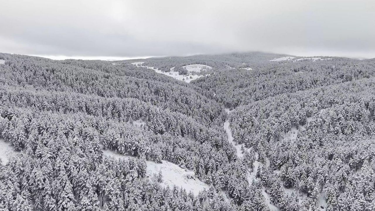 Kar kalınlığının 1 metreyi aştığı tabiat parkındaki eşsiz manzara dronla havadan görüntülendi. Beyaz örtüyle kaplanan doğa, yazın olduğu gibi kışın da bölgenin doğal cazibesini koruduğunu bir kez daha ortaya koydu.