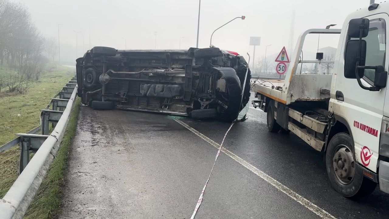 Kaza, sabah saatlerinde kuzey çevre yolunda meydana geldi. C.T. idaresindeki özel bir hastaneye ait 34 JY 7510 plakalı ambulans yoğun sis nedeniyle sürücüsünün direksiyon kontrolünü kaybetmesi sonucu bariyerlere çarparak devrildi. Kazada ambulans şoförü C.T. ile sağlık personeli Ç.A. yaralandı. İhbar üzerine bölgeye sağlık ve polis ekipleri sevk edildi. Yaralılar, sağlık ekibinin müdahalesinin ardından Düzce Üniversitesi Tıp Fakültesi Eğitim Araştırma ve Uygulama Hastanesi'ne kaldırılarak tedaviye alındı.