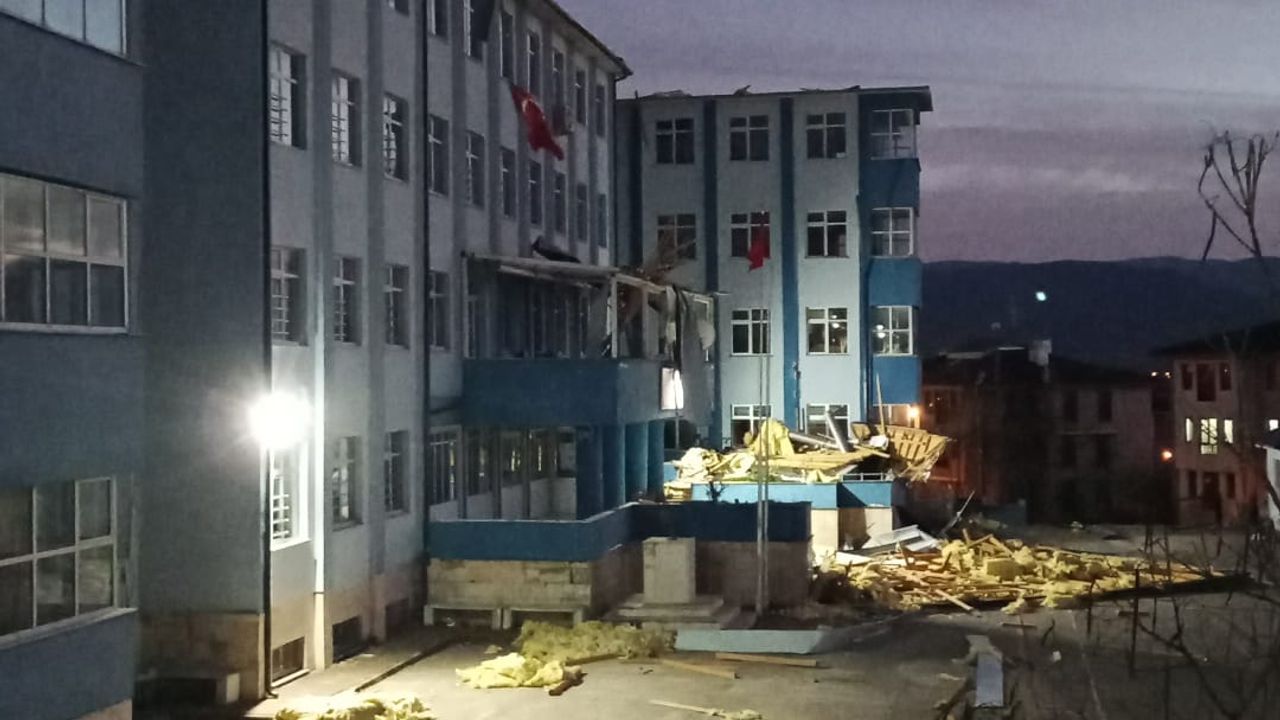 Düzce'de, kuvvetli rüzgar nedeniyle bir lisenin çatısı uçtu. Çatıdan kopan sac ve demir parçaları caddeye savrulurken, olayda şans eseri yaralanan olmadı. Okulda eğitime yarın için ara verildi.