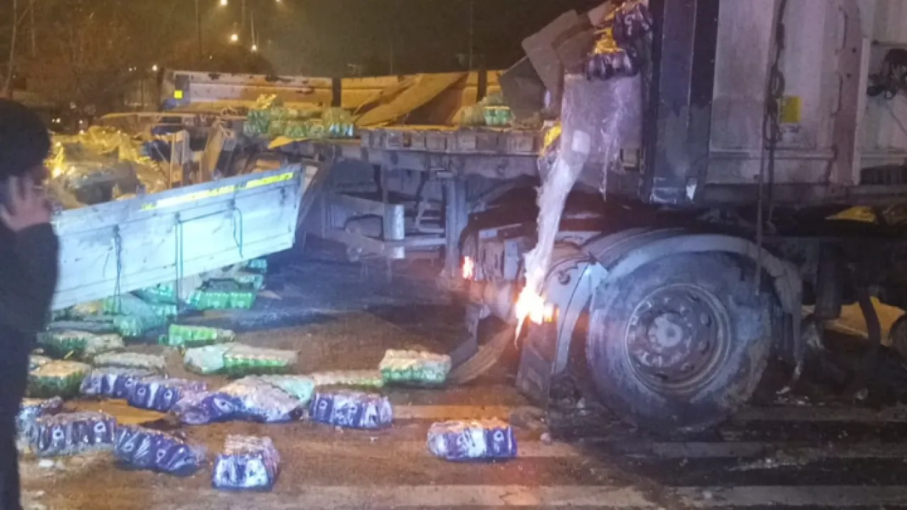 Kontrolden çıkan TIR güçlükle durabilirken, dorsesinde bulunan soda kasaları çarpmanın etkisiyle yola savruldu. Kaza nedeniyle karayolunda kısa süreli trafik aksaması yaşandı.