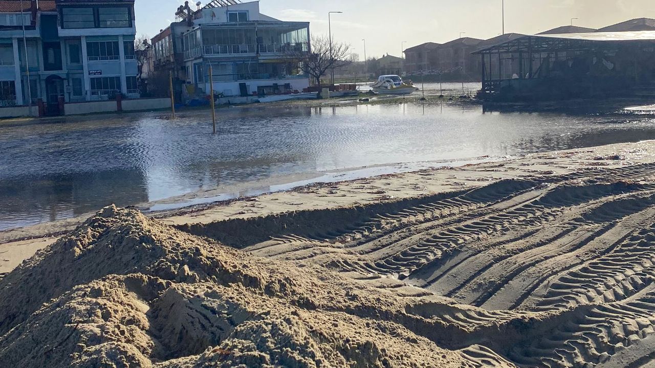 Enez ilçesinde dün fırtına etkili olurken, bir yandan da deniz taştı. Deniz taşması nedeniyle sürücüler, araçları ile yolda ilerlemekte güçlük çekti. Su ile dolan bazı cadde ve sokaklar yaya trafiğe kapatılırken, sahil şeridindeki bazı ev ve iş yerlerini su bastı. Etkisini yitiren fırtına sonrası Enez Belediyesi ekipleri, bu sabah tahliye çalışması başlattı. Enez Belediye Başkanı Özkan Günenç de taşkın yaşanan alanlarda incelemelerde bulundu. Günenç, 'Şiddetli lodos sebebiyle oluşan deniz taşkınıyla mücadelede ekiplerimiz aralıksız çalışmalarına devam etmektedir' dedi. (DHA)