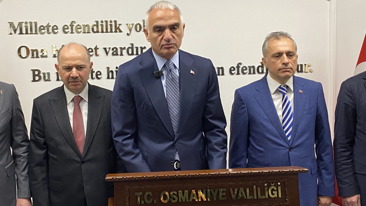 Kültür ve Turizm Bakanı Mehmet Nuri Ersoy, bir dizi ziyaret, toplantı ve incelemelerde bulunmak üzere Osmaniye'ye geldi. Osmaniye Valiliği'nde İl Değerlendirme Toplantısı'na katılan Bakan Ersoy, burada açıklama yaptı. Osmaniye'nin sadece doğal güzellikleriyle değil, aynı zamanda vatanına, milletine bağlı insanlarıyla da ülkenin en kıymetli şehirlerinden biri olduğunu belirten Bakan Ersoy, 'Bu topraklar, Cumhur İttifakı'nın önemli yapı taşlarından Milliyetçi Hareket Partisi Genel Başkanı Devlet Bahçeli'nin memleketidir. Bu yönüyle Osmaniye, milli birlik ve beraberlik ruhunun da simge şehirlerindendir. Bu kıymetli şehrimizin hem kültür varlıklarının korunması hem de turizm potansiyelinin hak ettiği seviyeye ulaştırılması için çalışmalarımızı sürdürüyoruz. Cumhurbaşkanımız Recep Tayyip Erdoğan'ın güçlü liderliğinde, son 24 yılda Türkiye'mizin dört bir yanında çok önemli projelere imza attık. Bu vesileyle sizlerle Cumhurbaşkanımızın bir talimatını da paylaşmak isterim. Bizlere hep 'Şehirlerimizin kültürel varlıklarını gözünüz gibi koruyun. Turizm potansiyelini ise hep bir üst çıtaya taşıyın, taşıyın ki turizmden esnafımız da kazansın, ulaştırma, gıda gibi sektörlerde iş yapanlar da iş- aş kazansın' der. Ama konu Osmaniye olunca ayrı bir hassasiyetle davranır Sayın Cumhurbaşkanımız. Bu talimat üzerine biz de gereğini her zaman yaptık, yapıyoruz. Kültürel mirasımızı korumak yalnızca geçmişe sahip çıkmak değil; aynı zamanda geleceğe güçlü bir kimlik bırakmaktır. Bu anlayışla Osmaniye'deki tüm kültür varlıklarımızı bilimsel yöntemlerle korumaya ve gelecek nesillere aktarmaya devam edeceğiz. Türkiye'nin turizmde yakaladığı ivme ve elde ettiği rekorlar, Anadolu'nun her köşesindeki şehirlerimizin potansiyelinin doğru politikalarla nasıl değerlendirildiğinin en açık göstergesidir' dedi.