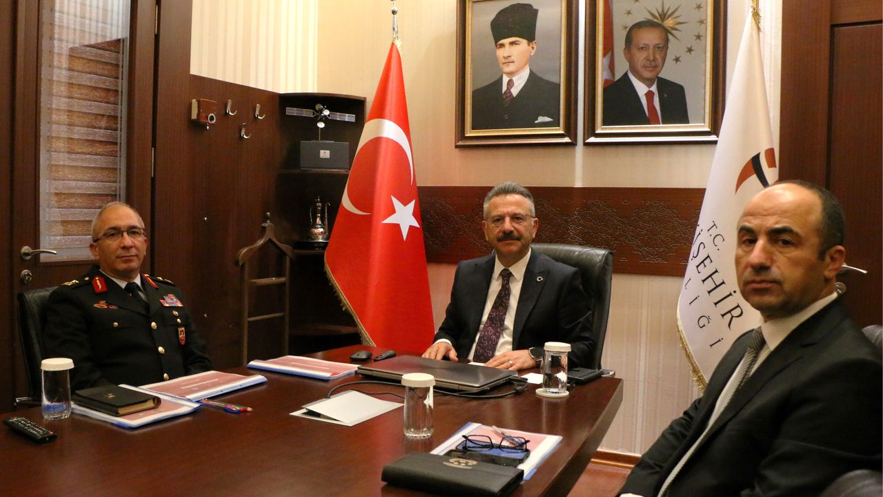 İl Jandarma Komutanı Tuğgeneral Erhan Demir ve İl Emniyet Müdürü Tolga Yılmaz'ın katılımıyla yapılan toplantıda konuşan Vali Aksoy, kentin güvenliği için çalışmaların özenle sürdürüldüğünü söyledi.