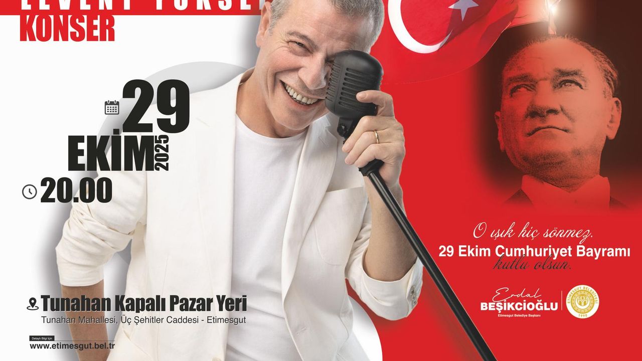 Cumhuriyet Bayramı kutlamaları, akşam saat 20.00’da Tunahan Kapalı Pazar Yeri’nde Levent Yüksel konseri ile devam edecek. Sanatçı, sevilen şarkılarını seslendirecek.