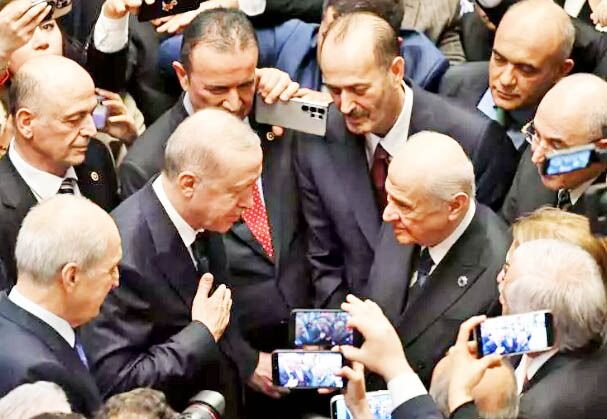 Resepsiyon salonuna geçiş sırasında basın mensuplarının, CHP Genel Başkanı Özgür Özel ile görüşme olup olmayacağına ilişkin sorusunu yanıtlayan Erdoğan, “Ben iktidar partisiyim, o ana muhalefet partisi. Bir defa bizim kitabımızda yok. Niye görüşmeyelim?” ifadelerini kullandı.