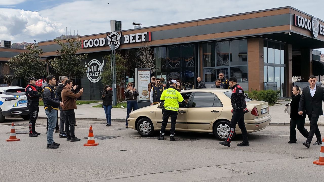 ZONGULDAK'ta, Karaelmas Gazeteciler Derneği (KGD) üyesi olan basın mensupları, asayiş uygulaması yapan polislerin, Polis Haftası'nı tatlı ikram ederek kutladı. Gazetecilerin hediye ettiği çiçeği alan memurlardan biri, otomobili kontrol ettiği sırada çiçeği elinde tuttu.