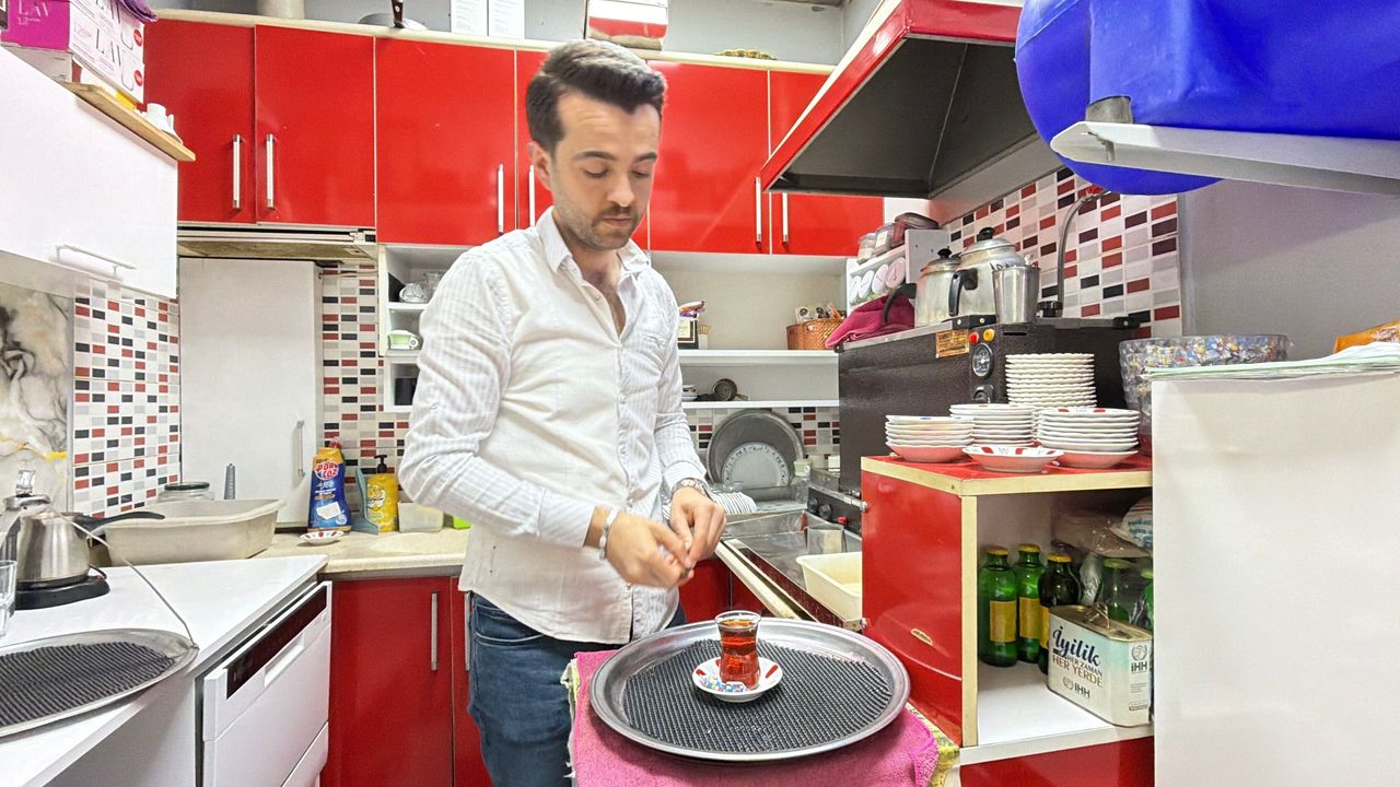 Orta Mahalle Kasaplar Sokak'ta çay ocağı işleten Basri Akbıyık, yaklaşık 300 metre uzunluğundaki caddede 20'nin üzerinde esnafa çay servisi yapıyor. Her gün 25 binin üzerinde adım attığı için yorulan Basri Akbıyık, dükkanına uzak mesafedeki esnafın servisin geç gelmesi ve çayın soğuk olması gibi şikayetleri de eklenince farklı bir yönteme başvurdu. Yaklaşık 1 hafta önce ginger olarak bilinen elektrikli bir hoverboard alan Basri Akbıyık, çay servisini bu araçla yapmaya başladı.
