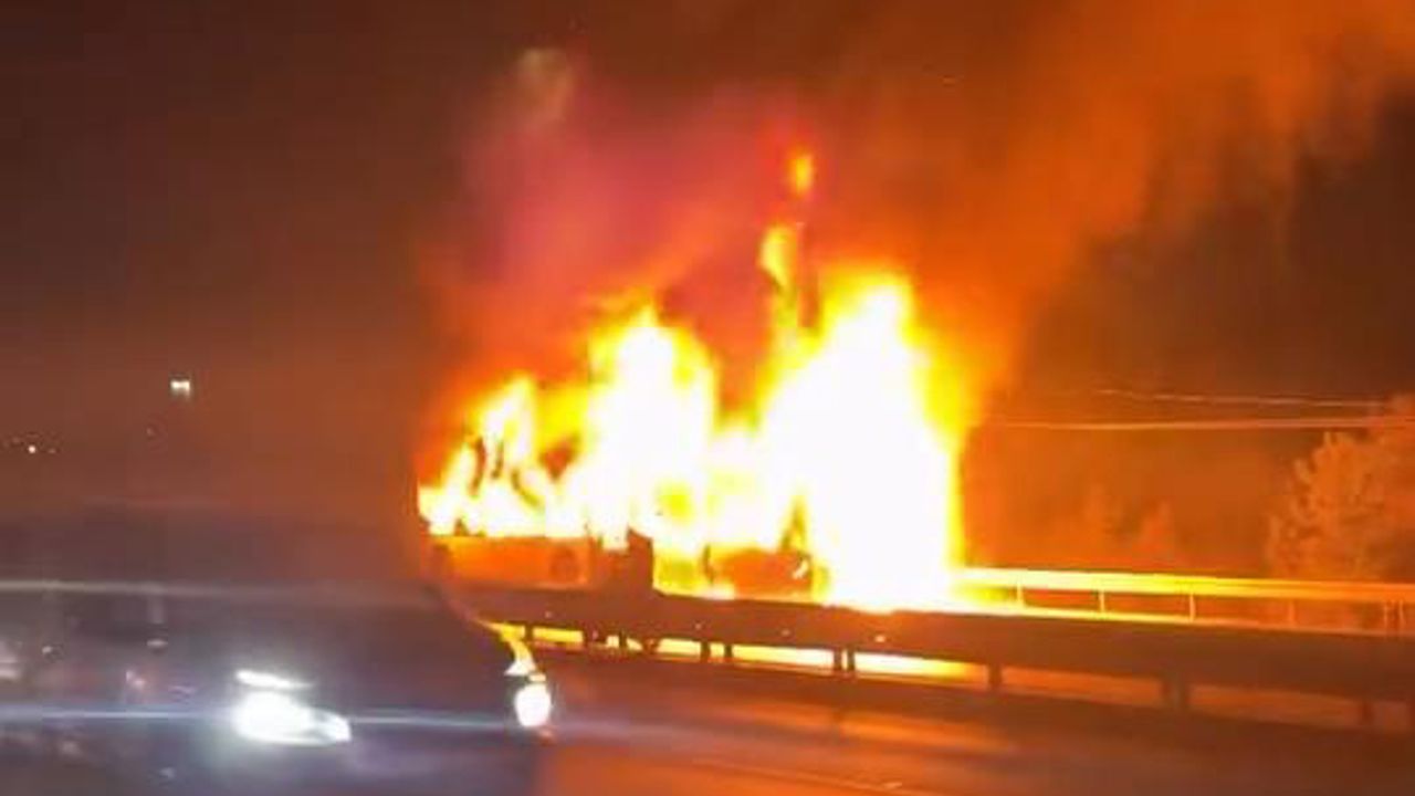 Yangın, Eski Edirne Asfaltı Fenertepe mevkisinde seyir halinde olan İETT otobüsünde çıktı. Otobüs alev alev yanarken, olay yerine itfaiye ekipleri sevk edildi.(DHA)