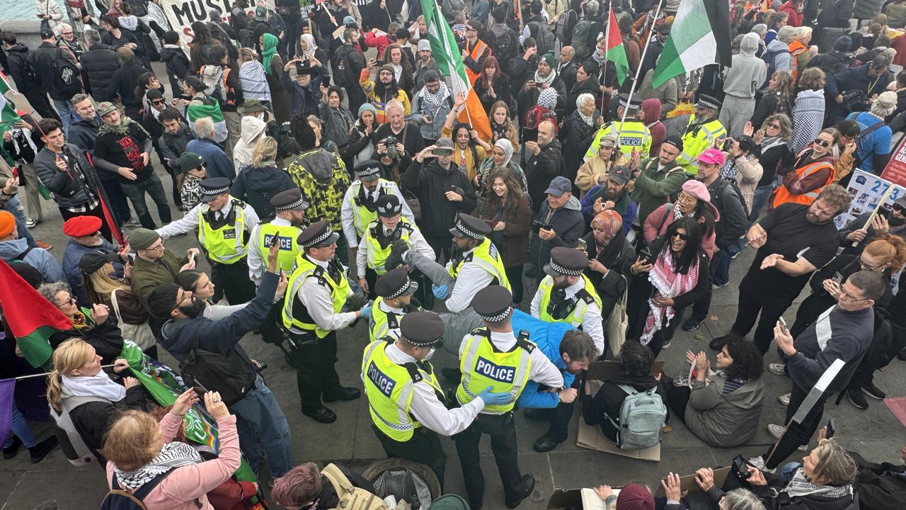 Trafalgar Meydanı’nda gerçekleştirilen eylemde katılımcılar, “Soykırıma karşıyım, Palestine Action’ı destekliyorum” yazılı pankartlar taşıdı. Londra Metropolitan Polisi, Palestine Action’ın yasaklı bir örgüt olduğunu belirterek, gruba destek vermenin suç teşkil ettiğini duyurdu.