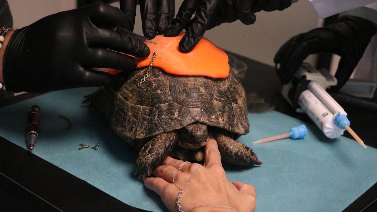 Ankara'da yol kenarında kabuğu kırılmış halde bulunan kara kaplumbağası 'Roka'ya 3 boyutlu protez takıldı.