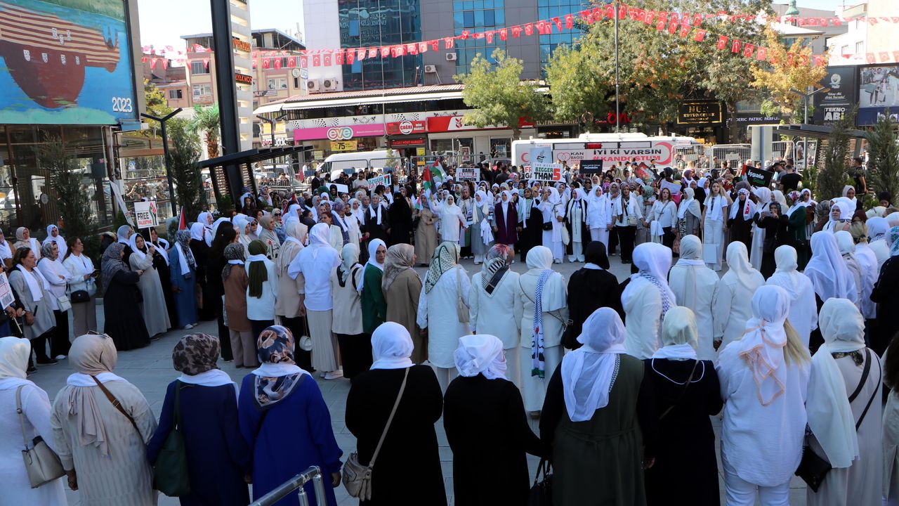 Beşyol mevkisinde yapılan basın açıklamasının ardından kadınlar, ellerinde taşıdıkları Türkçe ve İngilizce yazılı, ‘Özgür Filistin’, ‘Gazze için sessiz çığlık’, ‘Barış kadınla mümkün’, ‘İşgale son’ pankartlarıyla Cumhuriyet Caddesi’ndeki Kent Meydanı’na kadar yürüdü. Burada zincir oluşturan kadınlar daha sonra dağıldı. (DHA)