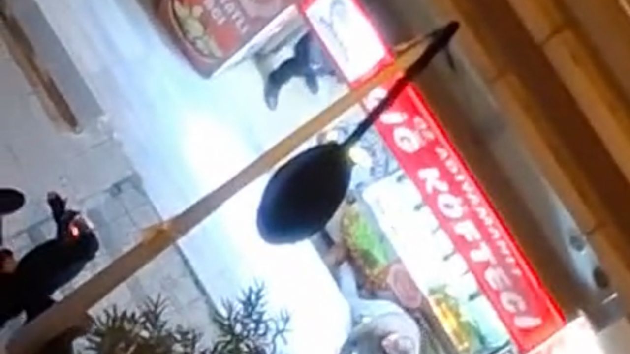 Bir süre sonra tekrar ayağa kalkan saldırgan elindeki bıçakla saldırınca bu kez de arkasından yaklaşan kişi saldırgana yumruk attı. Kavganın ardından taraflar sokakta gözden kayboldu. Yaşananlar cep telefonu kamerasına saniye saniye yansıdı.(DHA)