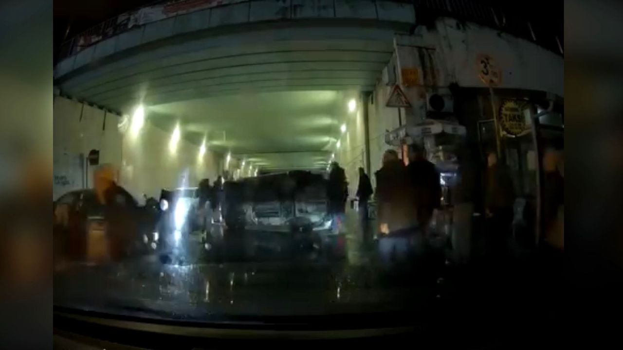 Kaza anı ise başka bir otomobilin araç içi kamerasına yansıdı. Polis ekipleri kazayla ilgili inceleme başlattı.