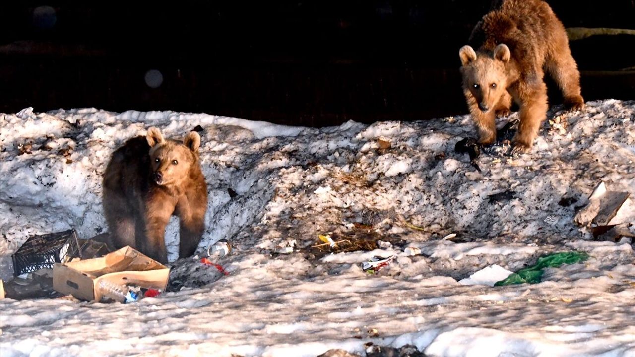 Sarıçam ormanlarıyla çevrili 2 bin 150 rakımlı Sarıkamış'ta, kış uykusundan uyanan bozayılar kayak merkezi oteller bölgesinde görüntülendi.