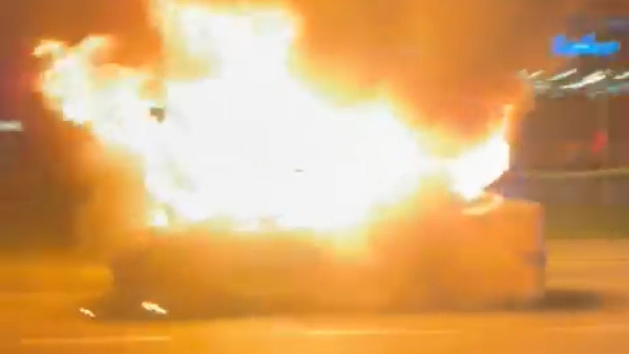 Yangın, gece saatlerinde Turgut Özal Bulvarı'nda seyir halindeki otomobilde çıktı. Edinilen bilgiye göre, seyir halindeki otomobilin motor kısmından alevlerin yükseldiğini gören sürücü, aracı yol kenarına çekti. Çevredekilerin ihbarı üzerine olay yerine itfaiye ve polis ekipleri sevk edildi. İtfaiye ekiplerinin müdahalesiyle yangın kontrol altına alınarak söndürüldü. Yangın sonrası otomobil kullanılamaz hale geldi. Otomobilin alev alev yandığı anlar çevrede bulunan vatandaşların cep telefonu kamerasına yansıdı. (DHA)