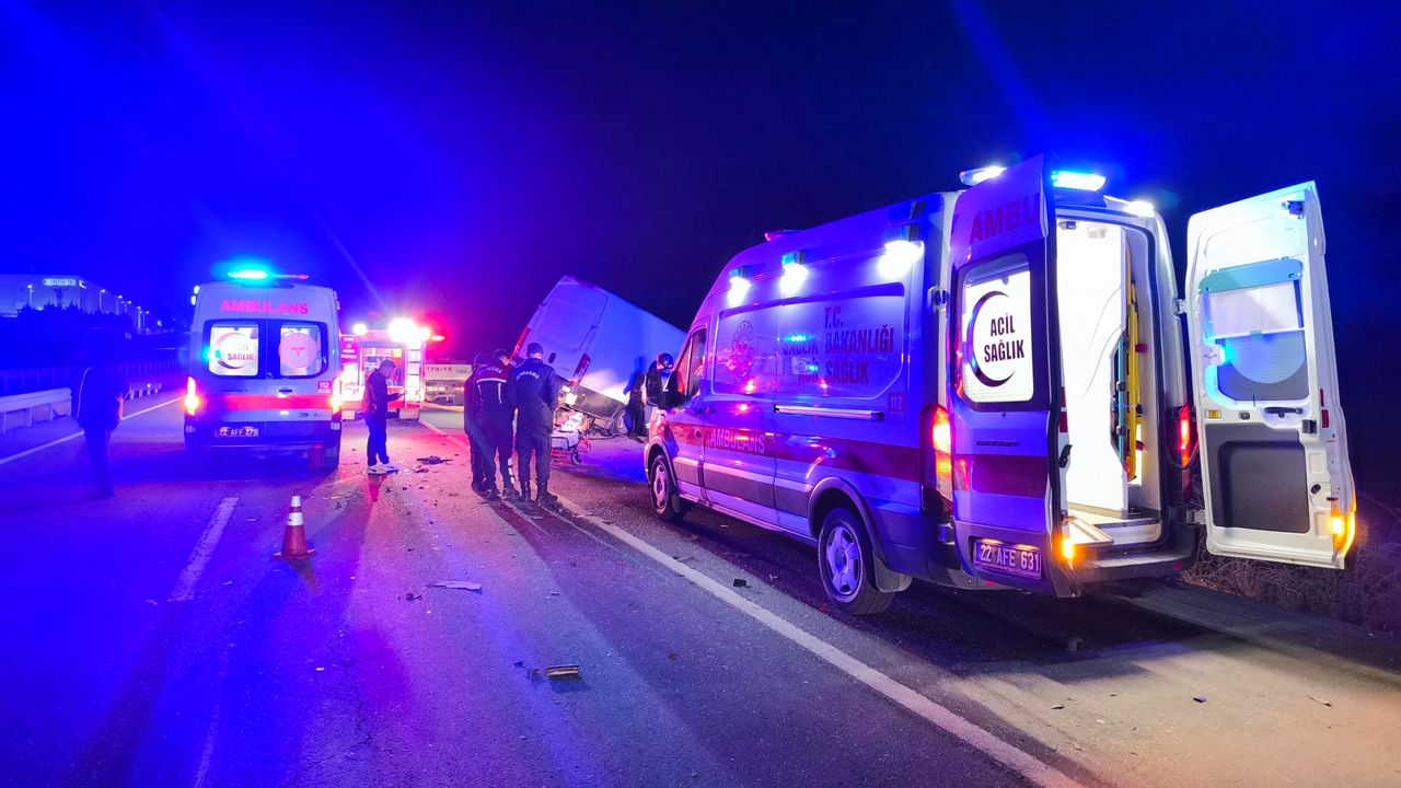 Kaza, saat 23.00 sıralarında Keşan-Malkara kara yolunun 6'ncı kilometresinde meydana geldi. Keşan'dan Malkara yönüne giden ve sürücüsünün kimliği henüz belirlenemeyen 59 AOG 678 plakalı kapalı kasa kamyonet, aynı yönde seyir halinde olan Ö.K. (50) yönetimindeki 20 ASZ 945 çekici ve 34 FIY 623 dorse plakalı TIR'a arkadan çarptı. Kazada, kamyonette bulunan Pakistan uyruklu Masawood Ur Rehman (25) ve Muhammad Taimoor (31) ile Türk uyruklu T.Y. (17) yaralandı.