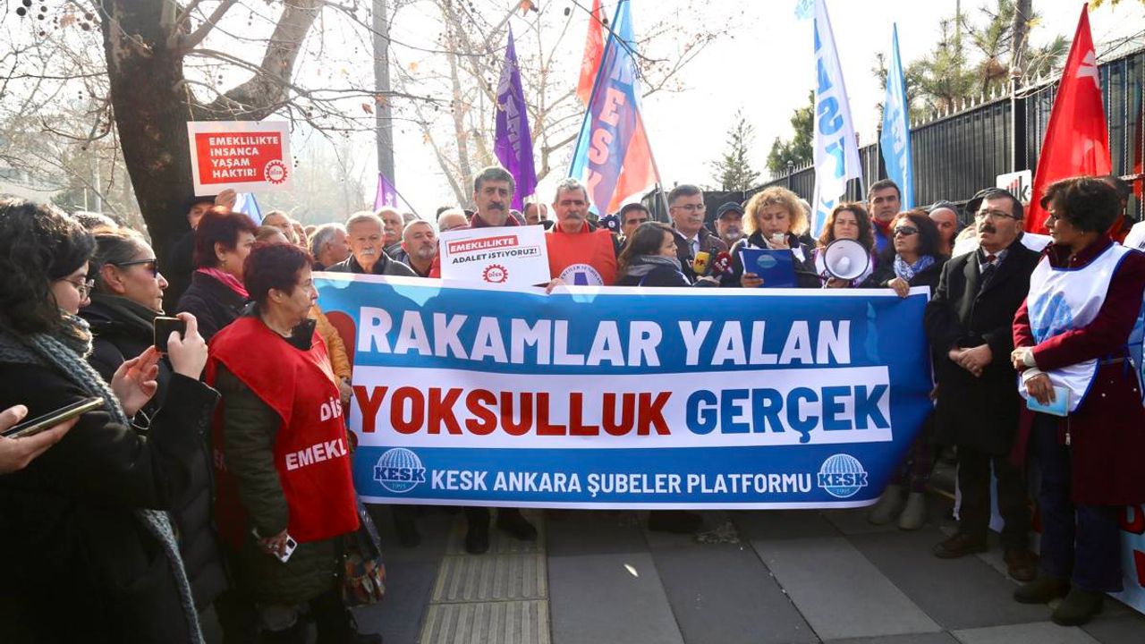 Kamu Emekçileri Sendikaları Konfederasyonu’na (KESK) bağlı yaklaşık 100 sendika üyesi, bugün açıklanan enflasyon rakamlarına tepki göstermek için TÜİK önünde toplandı. “TÜİK’in yalanlarına teslim olmayacağız” yazılı pankart açan grup, sembolik olarak mum yakarak gökyüzüne siyah balonlar bıraktı.