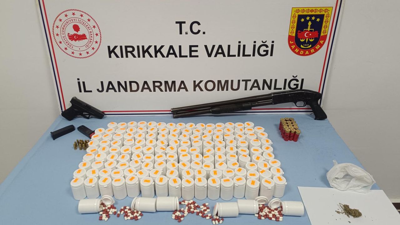 Kırıkkale’nin Keskin ilçesinde bir evde yapılan operasyonda, 8 bin 252 sentetik uyuşturucu hap, ruhsatsız tabanca ve pompalı tüfek ele geçirildi, 1 şüpheli gözaltına alındı.