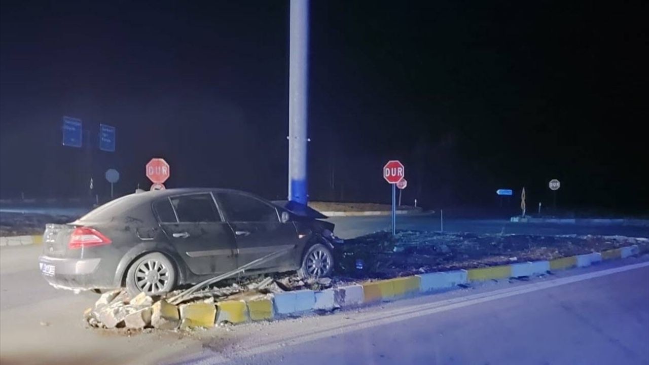 Konya'nın Beyşehir ilçesinde tabela direğine çarpan otomobildeki 3 kişi yaralandı.