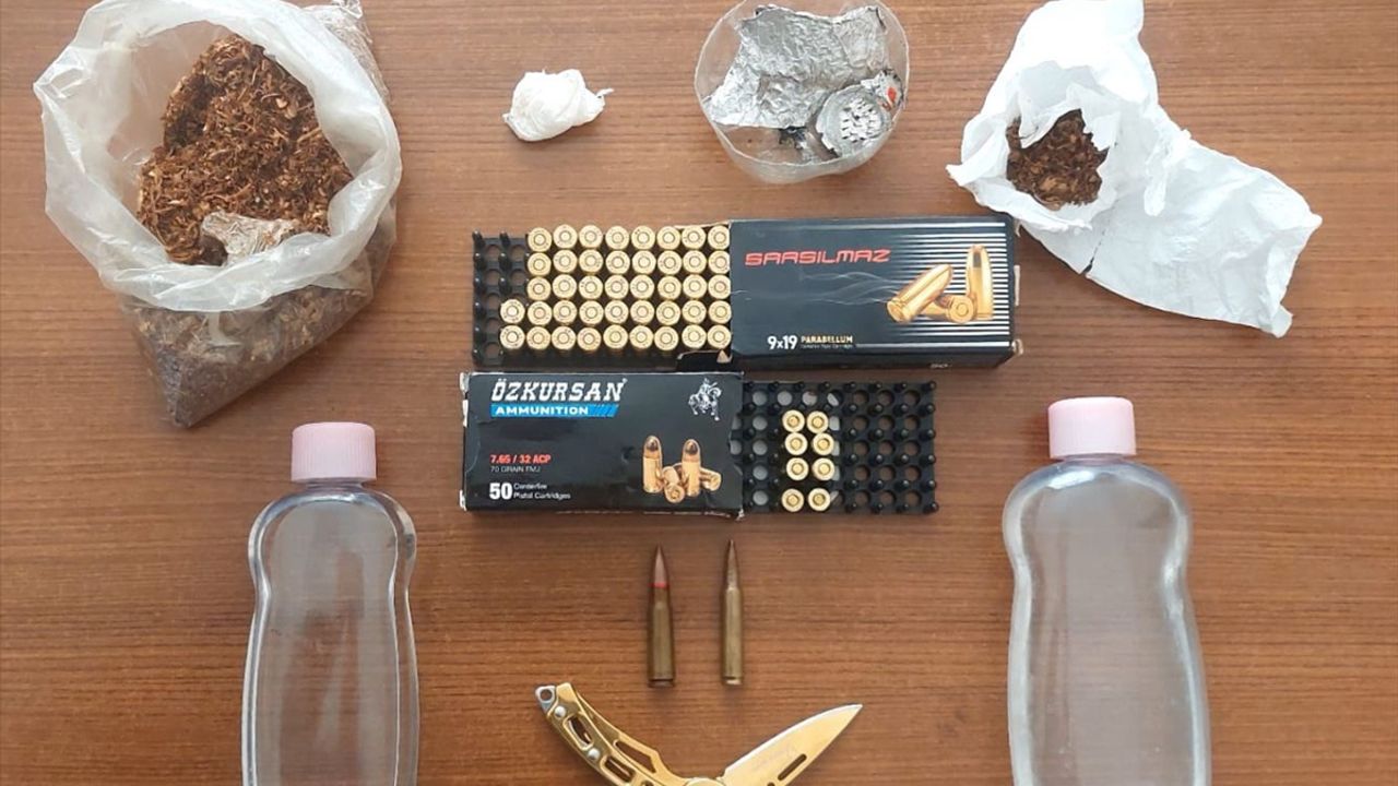 Zanlının evinde yapılan aramada, bir miktar tütüne emdirilmiş uyuşturucu madde ve farklı silahlara ait fişekler ele geçirildi.